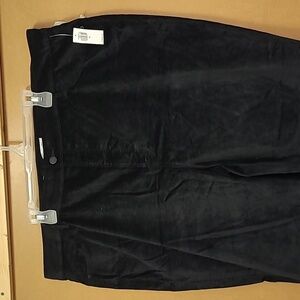 New with tags, no flaws seen. Lovely, black velvet, higher high rise, flare legged jeans with button and zipper closure and lightweight, somewhat stretchy material. Great for fall and winter. 75% cotton, 23% rayon, 2% spandex.