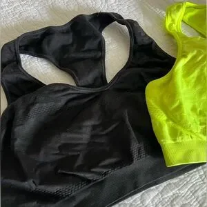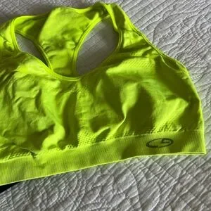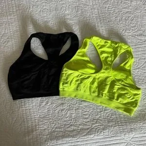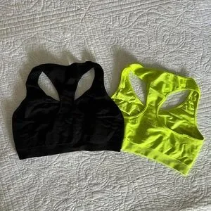 Two Champion brand sports bras, size large, great used condition! No padding or inserts. Bright neon yellow color and a black one as well.