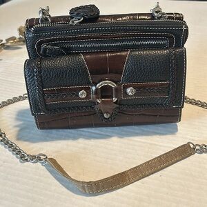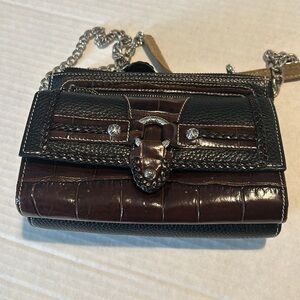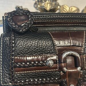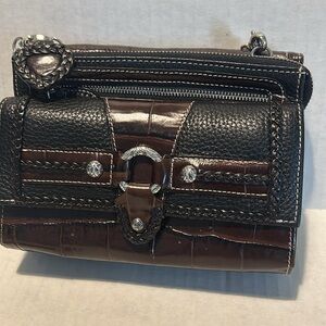 Brighton Black Brown Croc Embossed Leather Small Crossbody Organizer Wallet