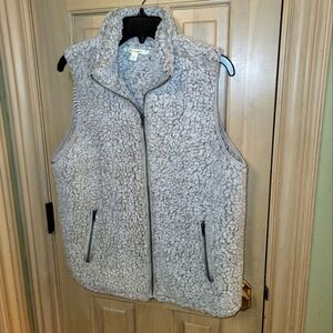 Misses sz L Miami Fuzzy Fleece Vest Zip up EUC