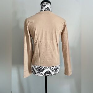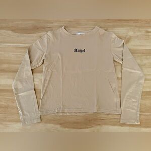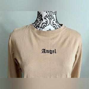 Adika Angel Embroidered Tan Long Sleeve Shirt Women’s Sz Small Soft Stretchy Y2K