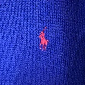 Classic blue knit Polo Ralph Lauren sweater with red logo. Comfortable and stylish. Excellent used condition. Only worn twice. Comes from a non smoking and pet free home.