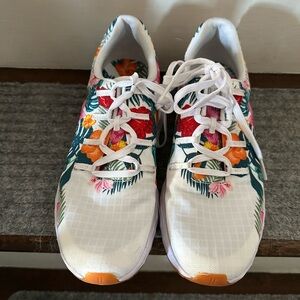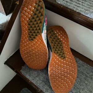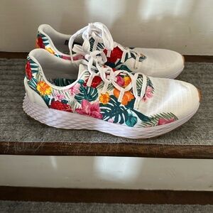 Worn once. Versatile. Resilient. Designed to handle a lot and last a long time. The all day knit wrapped and ripstop material makes it practically indestructible. Runs large. I ordered a half size down from my regular shoe size.