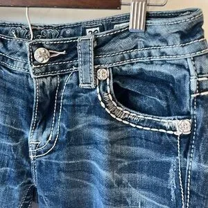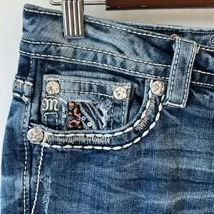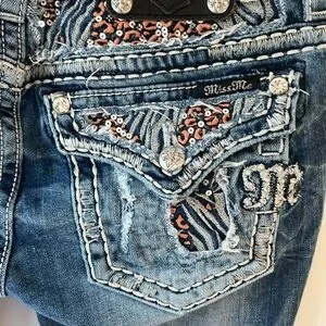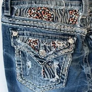 Fun sequins and distressing on the back pockets and waistline