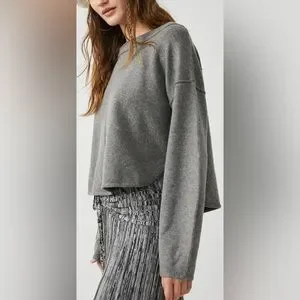 Elevate your style with this Free People Jamie Sweater in heather gray. The relaxed pullover features dropped shoulders, a boat neckline, and a relaxed boxy cropped fit to keep you cozy all winter, fall, and spring. The long-sleeve top is perfect for travel, casual outings, or workwear.