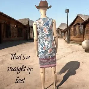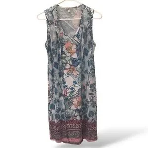 NWOT One World Micro Jersey Printed Mesh Overlay V-Neck Dress