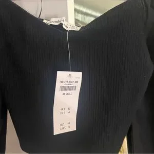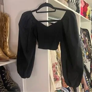 Stylish black top with dramatic puff sleeves. Perfect for a night out. Super soft ribknit bodice with good stretch, NWT