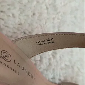 Elegant nude heeled sandals by Chinese Laundry. Features a stylish strap design.