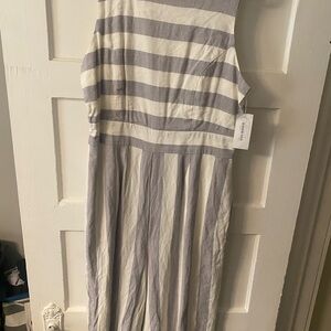 Grey and white stripped jumpsuit with pockets!
