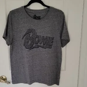 Stylish gray tee with Bowie graphic. Perfect for casual wear.