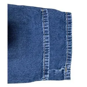 Other: 5 pocket design, zipper closure, Cropped with little (V) cutouts on the sides, medium wash, machine wash, made in Dominican Republic
