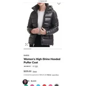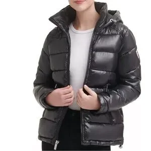 Guess Women's High-Shine Hooded Puffer Coat.