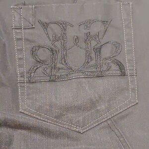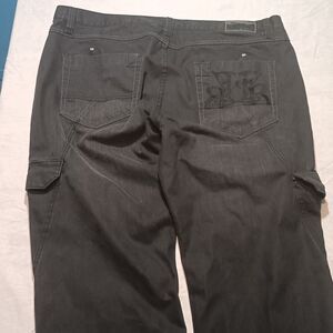 The FB Fubu Black Denim Cargo Jeans Embroidered Pockets Men's Size 42x30