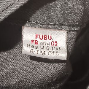 These black denim cargo jeans from FUBU feature embroidered pockets and a wide-leg, relaxed fit. Made from cotton denim, they have a vintage 90s hip hop style. The jeans are a size 42 with a 35-inch inseam, designed for men. They are machine washable and have a zip and button closure.