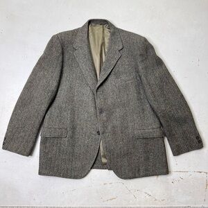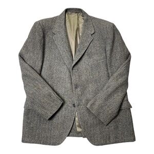 Vintage Harris Tweed Olive/Navy Herringbone 100% Scottish Virgin Wool Sport Coat