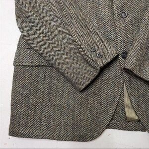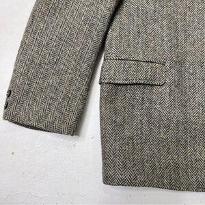 Men’s Size 48R…….Vintage Harris Tweed Olive/Navy Blue 100% Scottish Virgin Wool Sport Coat Jacket. Three button front, Single Rear Vent, Hidden inside pockets, one breast pocket, accent button on sleeves. Preowned in nice vintage condition. Pit/Pit:24”…..Top/Bottom:30”……Sleeves:25”……C…012725…….tags#Scottish Virgin wool, old money, Scotland , herringbone, old world style, classic, preppy, Single breasted, timeless, staple, blazer
