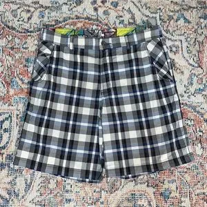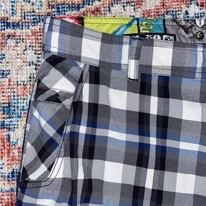 Lululemon Men’s Kahuna Black/Blue/White Plaid Shorts SZ 36