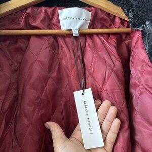 NEW Rebecca Minkoff Women’s Faux Shearling Zip Front Bomber Jacket Sz L Black