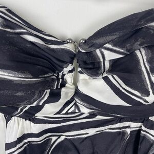 WHBM Strapless Black and White Leaf Silk Cocktail Dress