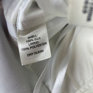 Gorgeous silk cocktail dress by White House Black Market Size 2 Strapless Black and White leaf print Back zip and clasp Excellent Preowned Condition. Nonslip silicone strip around top. Back zip