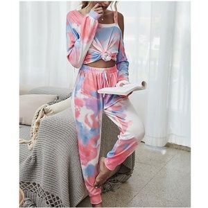 New Women's Tie-Dye Asymmetrical Top & Joggers Set