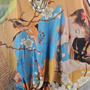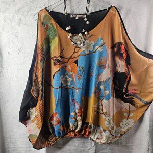 KU2 Kokomo Unlimited Blouse and Necklace Women Size L Silk Blossom Open Shoulder