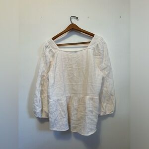 Madewell Lightspun Millbrook Puff-Sleeve Peplum Top- XL