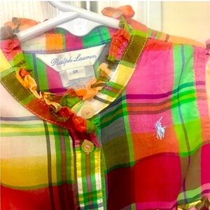Classic Ralph Lauren Polo plaid 6M dress. Features bold colors and intricate design.