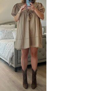 Anthropologie Pilcro Short-Sleeve Bow-Front Tunic Mini Dress SIZE L NEW