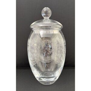 Vintage Bohemia Hand Made Crystalex Jar with Etched Design 9.5" Tall