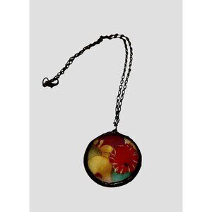 Vintage Handmade Embroidered Framed Quilt Piece Scrap Necklace Unusual Rare