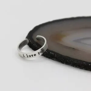 Jewelry ring band I Love You romantic adjustable silver tone simple minimalist