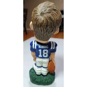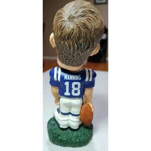 The product is a vintage NFL Peyton Manning Indianapolis Colts Knuckleheads Bobblehead. It features Peyton Manning, a former player for the Colts, in his football gear. The bobblehead is an original piece and not a reproduction, making it a unique collectible item for fans of the Indianapolis Colts and NFL memorabilia. This item would be a great addition to any sports memorabilia collection, especially for fans of Peyton Manning and the Indianapolis Colts during his time with the team.