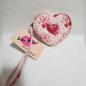 Luv Betsey By Betsy Johnson Heart-Shaped Wristlet with Pink Bows and hearts