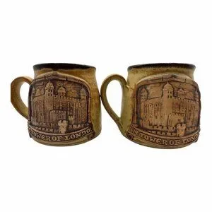 Tower Of London England Stoneware Mug Coffee Tea Cup United Kingdom Set of 2