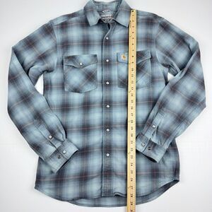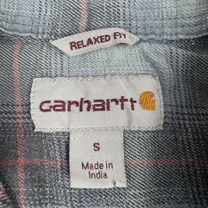 Carhartt Men's Relaxed Fit Plaid Long Sleeve Grey Blue Heavyweight Shirt Small