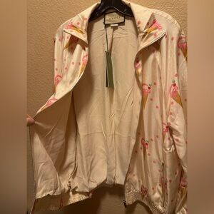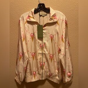New Authentic Gucci Ice Cream Logo Print Zipper Jacket Pink Size M