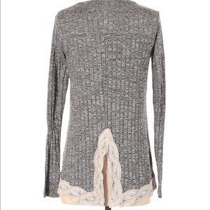 Lace detailed long sleeve ribbed top gray and cream colored 55% rayon, 41% polyester, 4% spandex