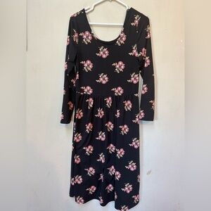 Old Navy Women’s Black Red Daisy Floral 3/4 Sleeve Stretchy Boho Midi Dress Medium