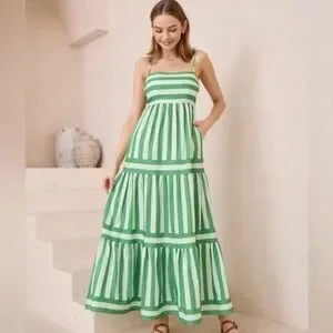 Wits The Label Postiano Striped Tiered Maxi Dress 4 Green White