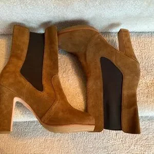 Talbots Womens Boots Ankle US 7 M Brown Suede Chelsea Pull On High Heels