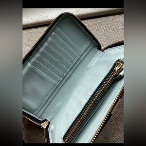 Features 8 card slots, 2 slip pockets, and a zippered coin pocket