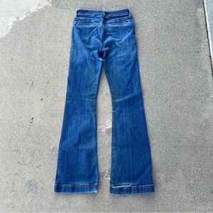 Used in worn condition. No stains but there is some fading and a rip on the inner left thigh and the bottom hem is partially ripped off as pictured.