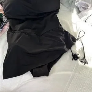 Stylish black one-piece swimsuit. Features straps. Perfect for beach or pool. 3X fits more like 2X. Never worn but no tags.