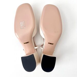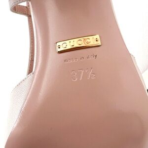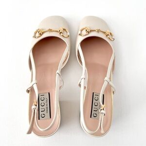 GUCCI || Lady Horsebit White Leather Slingback Closed Toe Block Heel Pumps 7.5