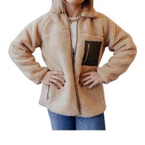 The Hartley Teddy Jacket by SAGE THE LABEL is a chic and cozy choice for winter with its textured pattern and maximalist trend appeal. This long-sleeve jacket features an on-trend combination of green and brown details, making it perfect for travel or Thanksgiving gatherings. Crafted with a shell of 100% Polyester and lined with 55% Nylon and 45% Polyester, it offers comfort and durability. Country of origin isn't specified, but it's designed with a convenient zip closure and is machine washable.