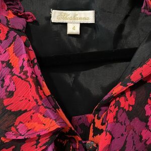 SHOSHANNA Floral Silk Sleeveless Ruffle Pencil Dress, Black/Red/Purple, Size 4