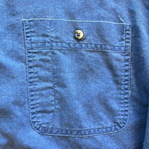 Vtg Wddie Bauer button down work shirt. Royal blue oxford cloth. 2 pocket front. Button down collar. Great condition Sz large