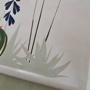 8.5 x 8.5 canvas picture. Graphic is printed on a off-white colored canvas. Light weight & easy to hang!