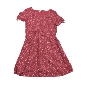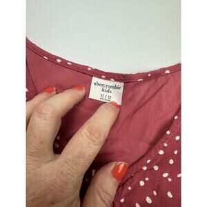 Abercrombie pink dress with white polkadots • fit and flare style with short sleeves • button details down the front • size 11-12 years • no noticable signs of wear